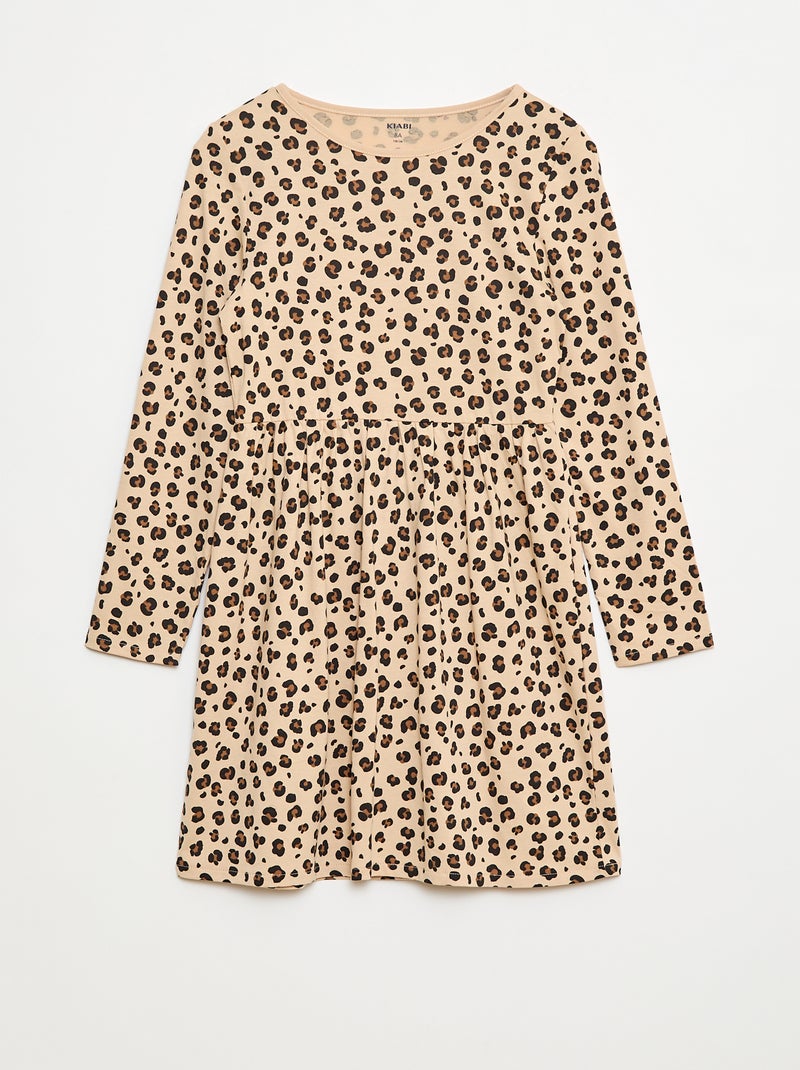 Abito in cotone con motivo - Beige
