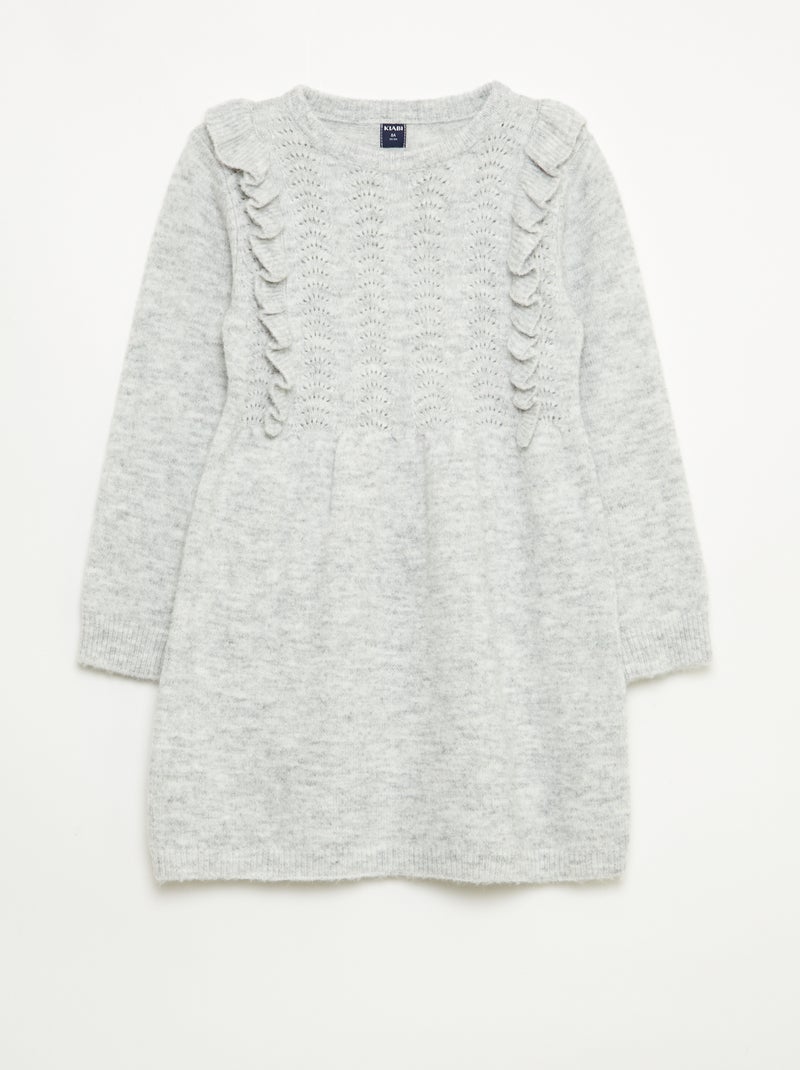 Abito maglione con lavorazione traforata e volant - Grigio