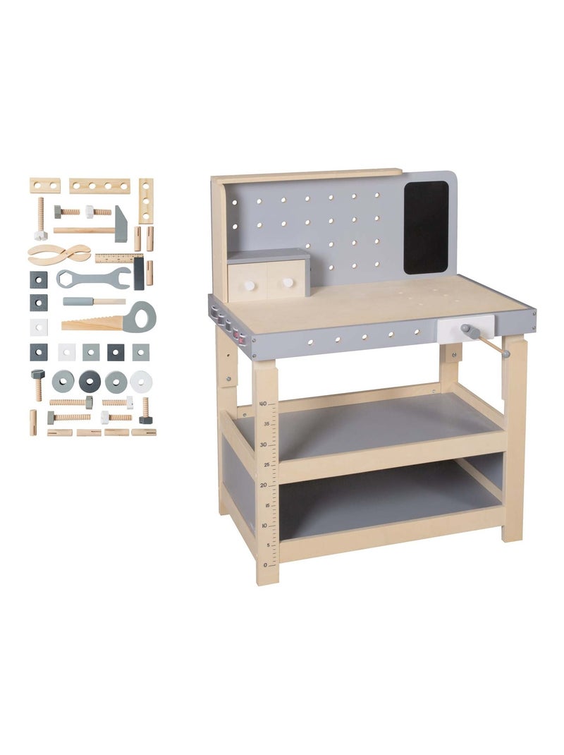 Banco da lavoro in legno per bambini, regolabile in altezza + 38 accessori – "Roba" - Grigio beige