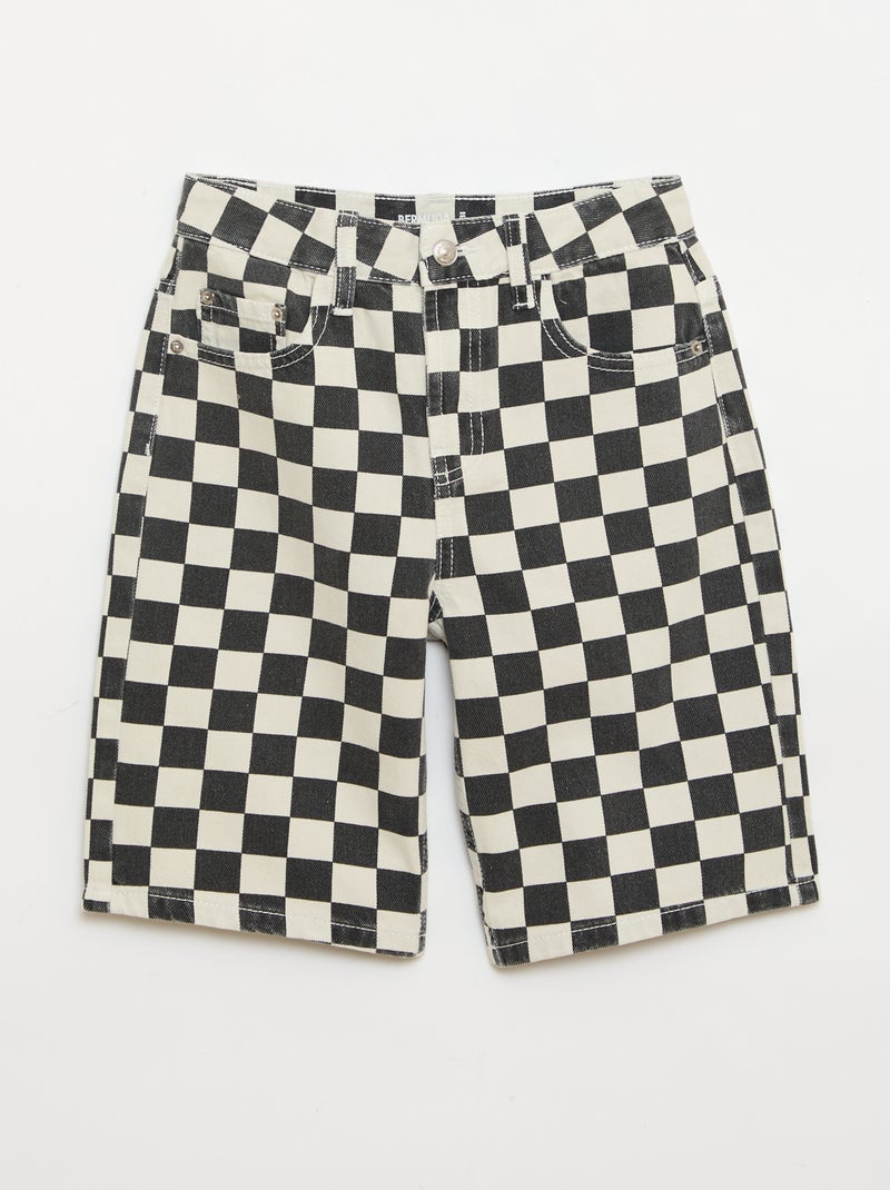 Bermuda in denim a quadri - Nero