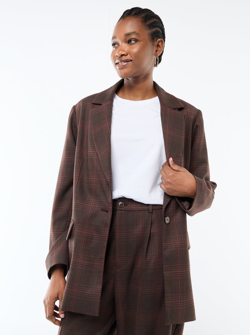 Blazer a maniche lunghe con motivo a quadri - Marrone