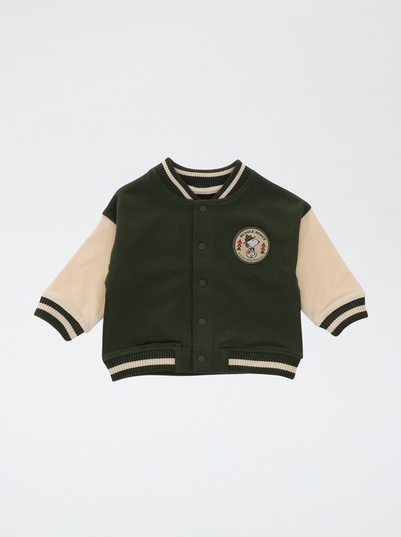 Il blouson in stile college con l'effigie di 'Snoopy'.