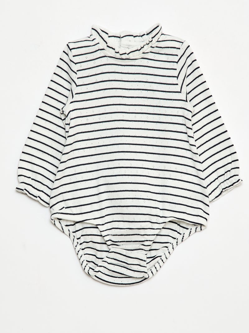 Un grazioso set di body colorati, morbidi e confortevoli per il tuo bebè! - Body - Maglia operata - Apertura con bottoni a pressione sul retro - Collo alto con ruches - Maniche lunghe con finiture a volant - Chiusura con bottoni a pressione all'inguine - Motivo all over
