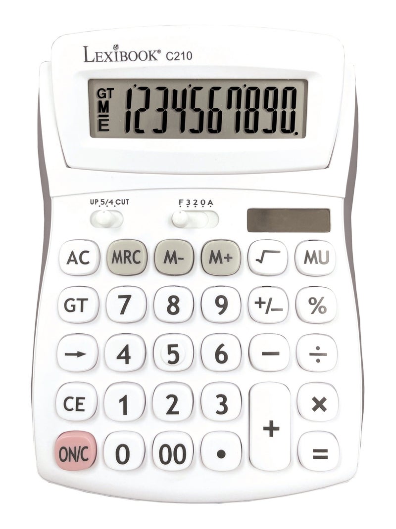 Calcolatrice tascabile a 10 cifre con angolo dello schermo regolabile e finitura in gomma - Bianco