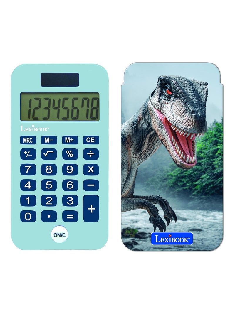Calcolatrice tascabile a 8 cifre Dinosauro con coperchio di protezione - Blu