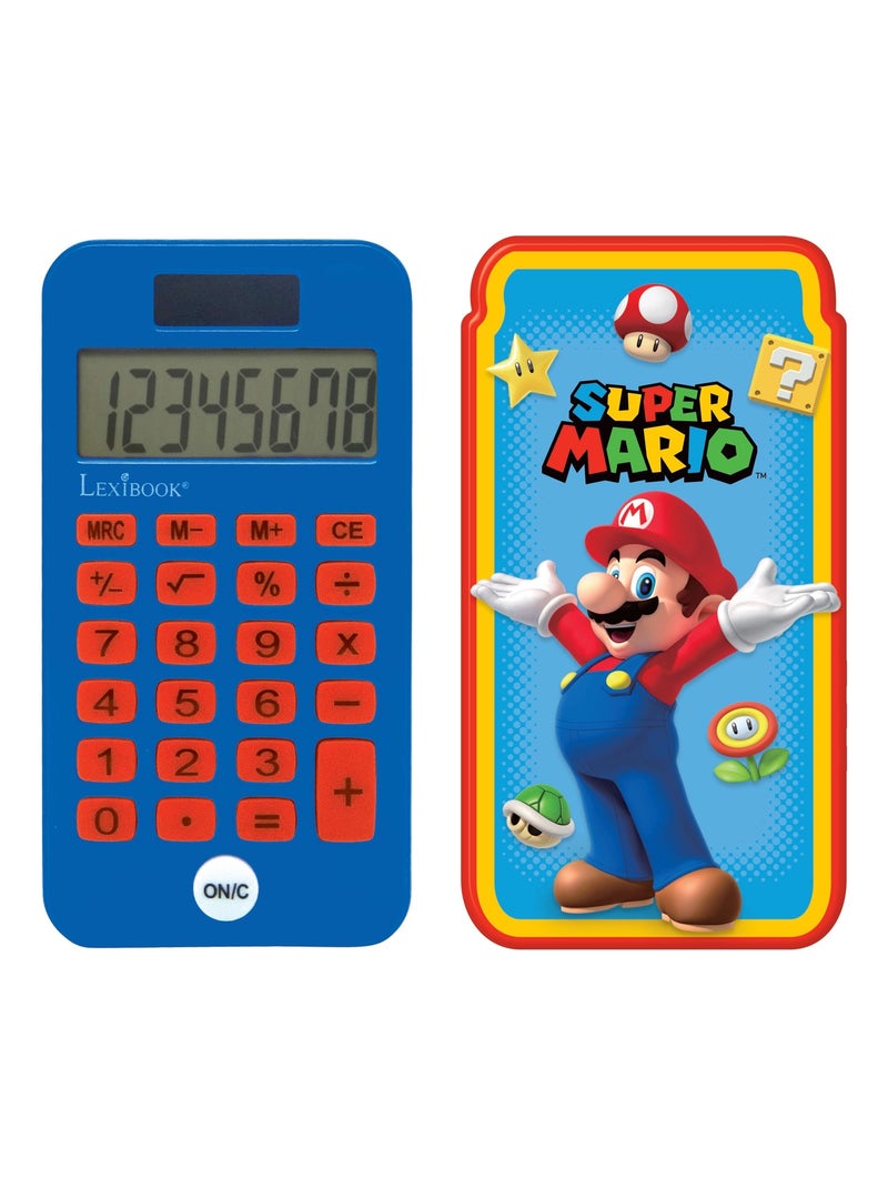 Calcolatrice tascabile Super Mario a 8 cifre con copertura di protezione - Blu