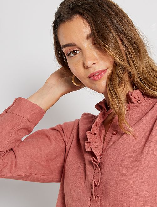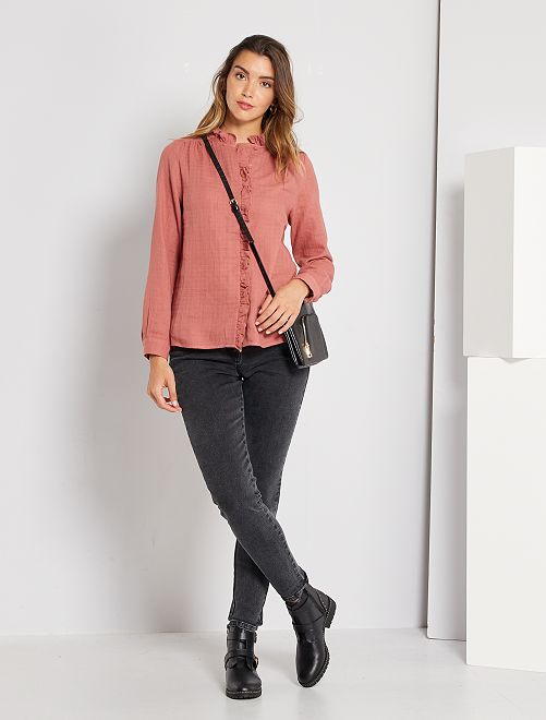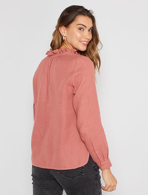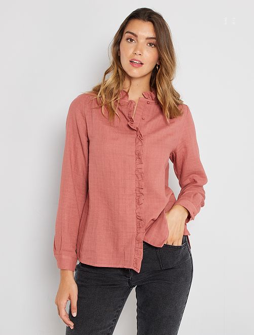 Massimo comfort con questa bella camicetta in garza di cotone. Adorabile la forma e i dettagli frufrù!