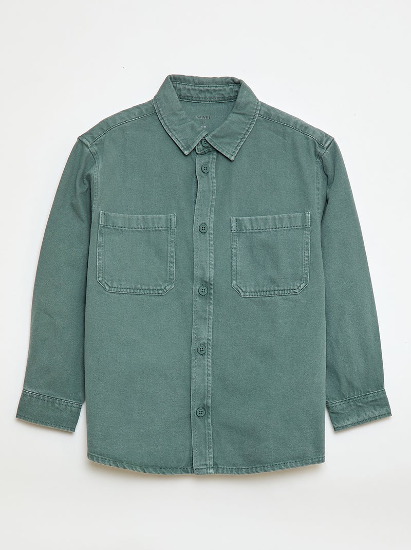 Camicia in twill con 2 tasche applicate sul petto - Verde