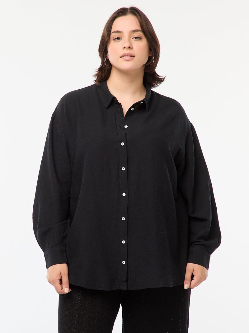 Camicia morbida in misto lino - nero