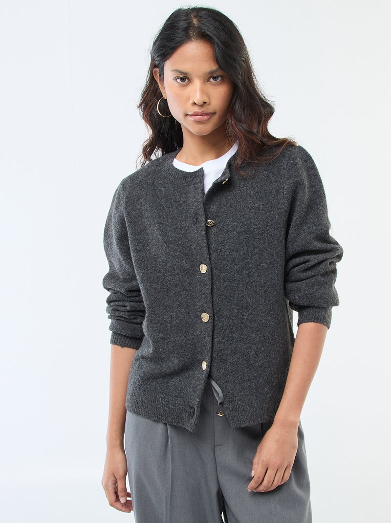 Cardigan in maglia con bottoni dorati - Grigio