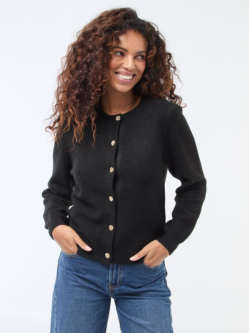 Cardigan in maglia con bottoni dorati - Nero