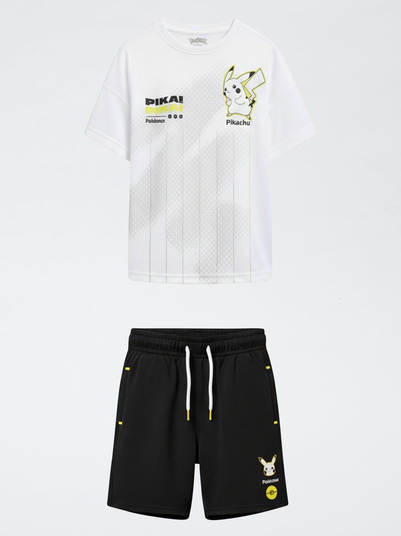 Completo pantaloncini + t-shirt 'Pokémon' 'Pikachu' - 2 pezzi - Bianco