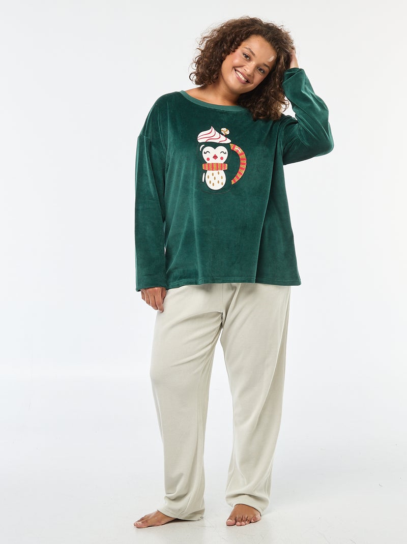 Completo pigiama in pile Natale - 2 pezzi - Verde