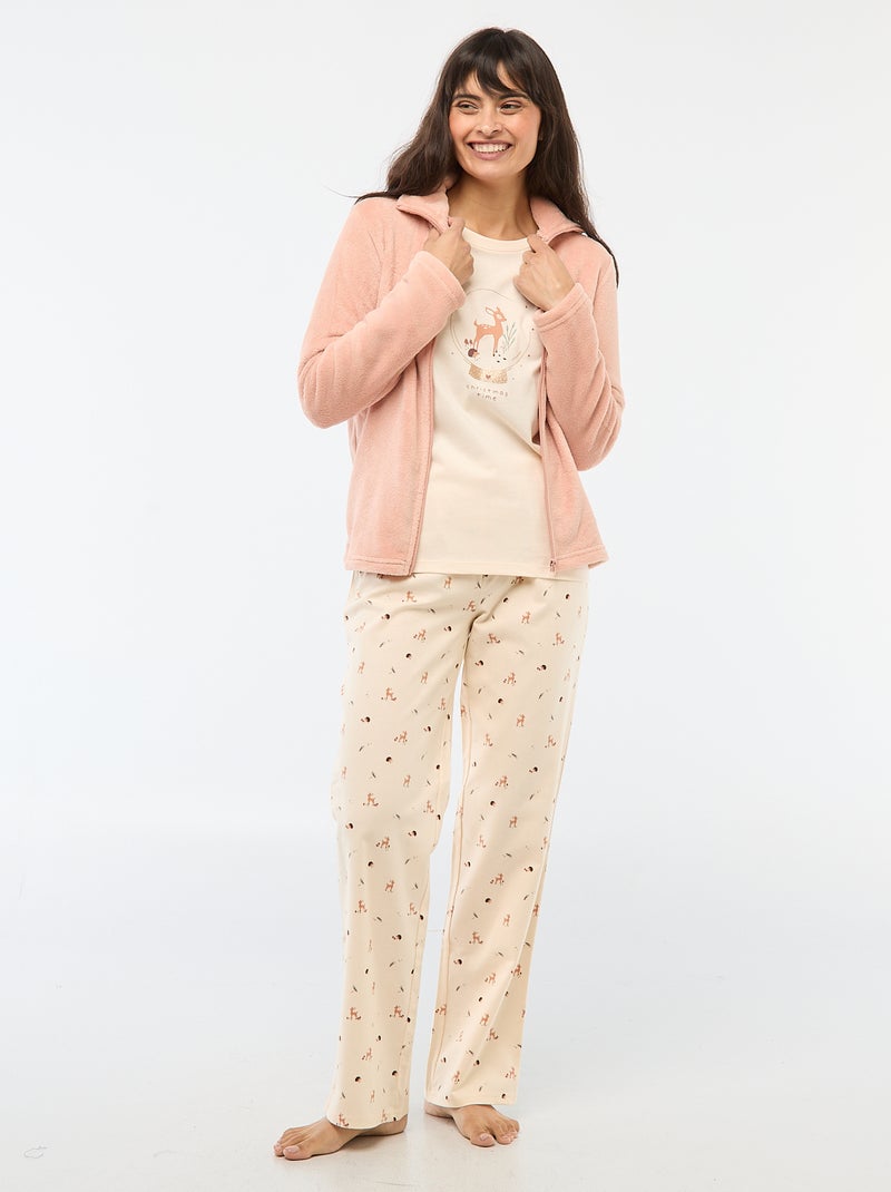 Completo pigiama lungo + felpa con zip in pile - 3 pezzi - Rosa