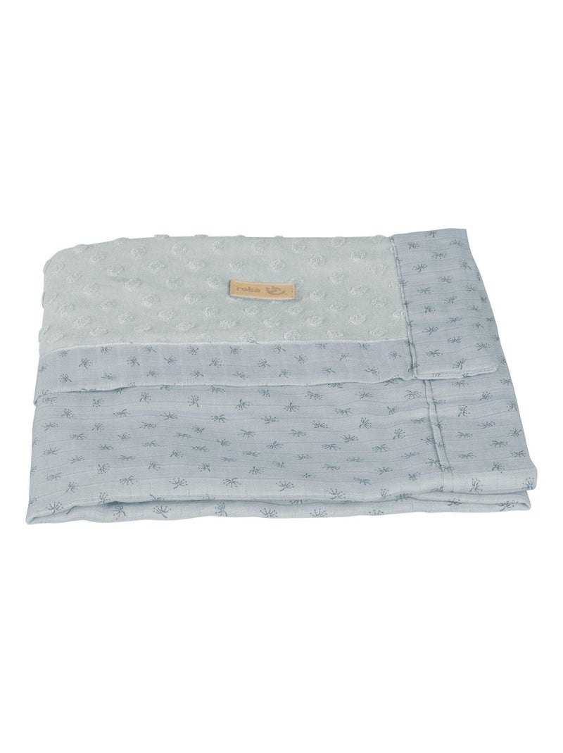 Copertina bebè in cotone bio con motivo a pois in rilievo "Roba lil planet" - Blu chiaro