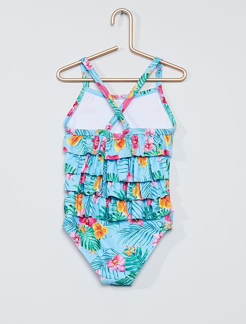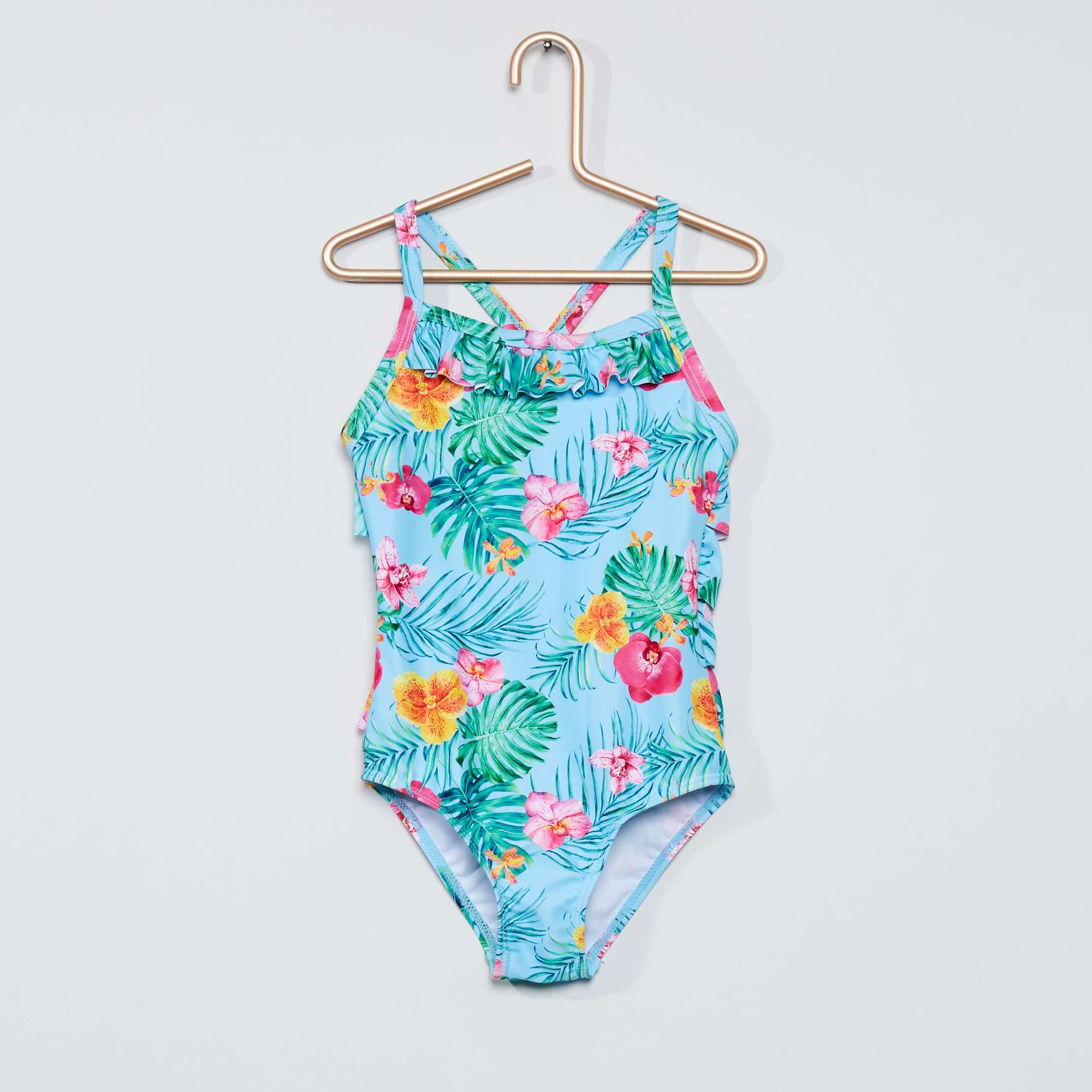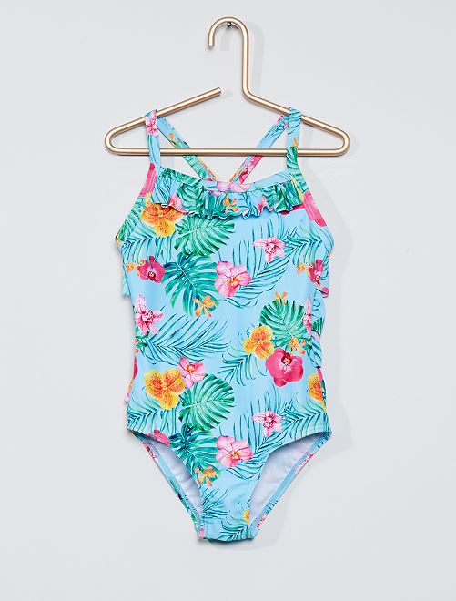 Ci tuffiamo nell'estate con questo costume intero con stampa 'tropicale'! È carinissimo con quei piccoli volant!