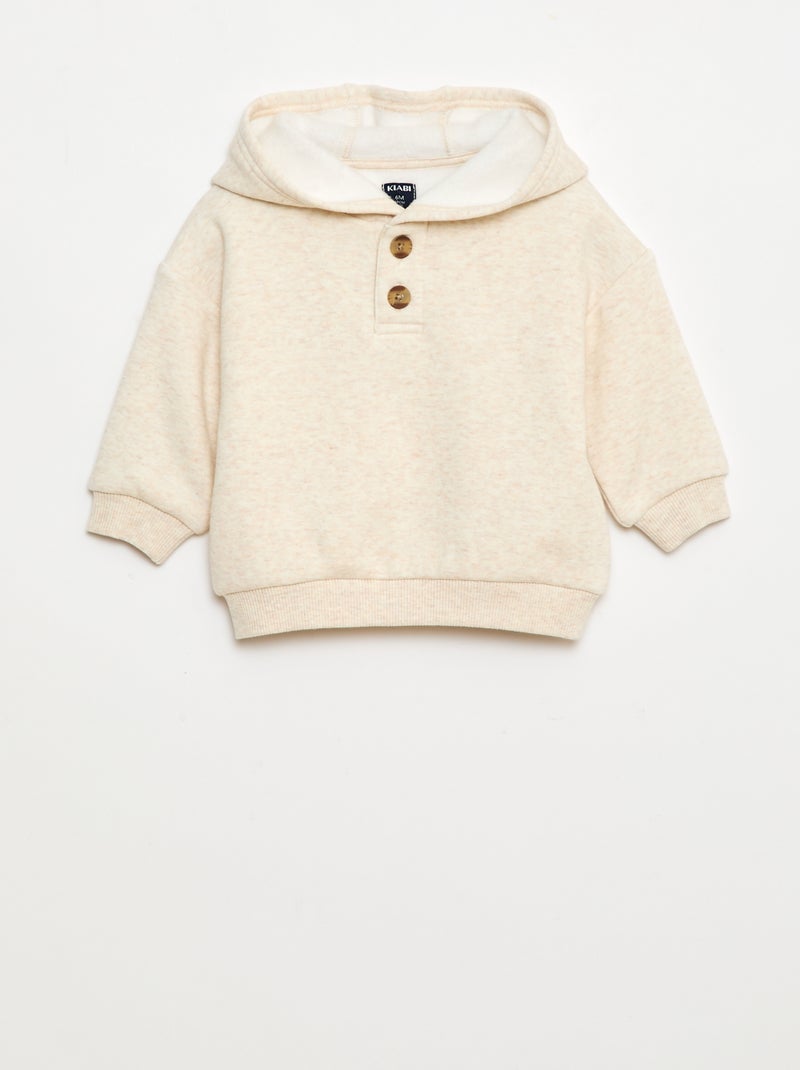 Felpa con cappuccio, bottoni e fodera calda - Beige