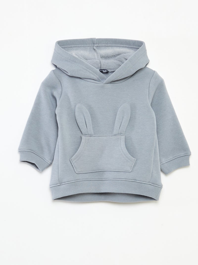 Felpa con cappuccio in felpa garzata con coniglietto - Blu