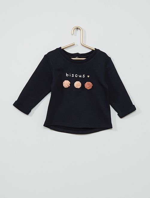 - Dettaglio fiori in tessuto sul davanti Con questa nuova linea, Kiabi si impegna con stile nello sviluppo della sua gamma di prodotti 'eco-sostenibili', promuovendo la sostenibilità ambientale nel settore tessile. Questo prodotto è realizzato al 100% in fibre di cotone provenienti da agricoltura biologica. Il cotone biologico è coltivato senza semi OGM con compost naturale che sostituisce i fertilizzanti chimici e i pesticidi. Anche tu puoi portare avanti questa iniziativa, lavando i tuoi capi a 30°C o a freddo!