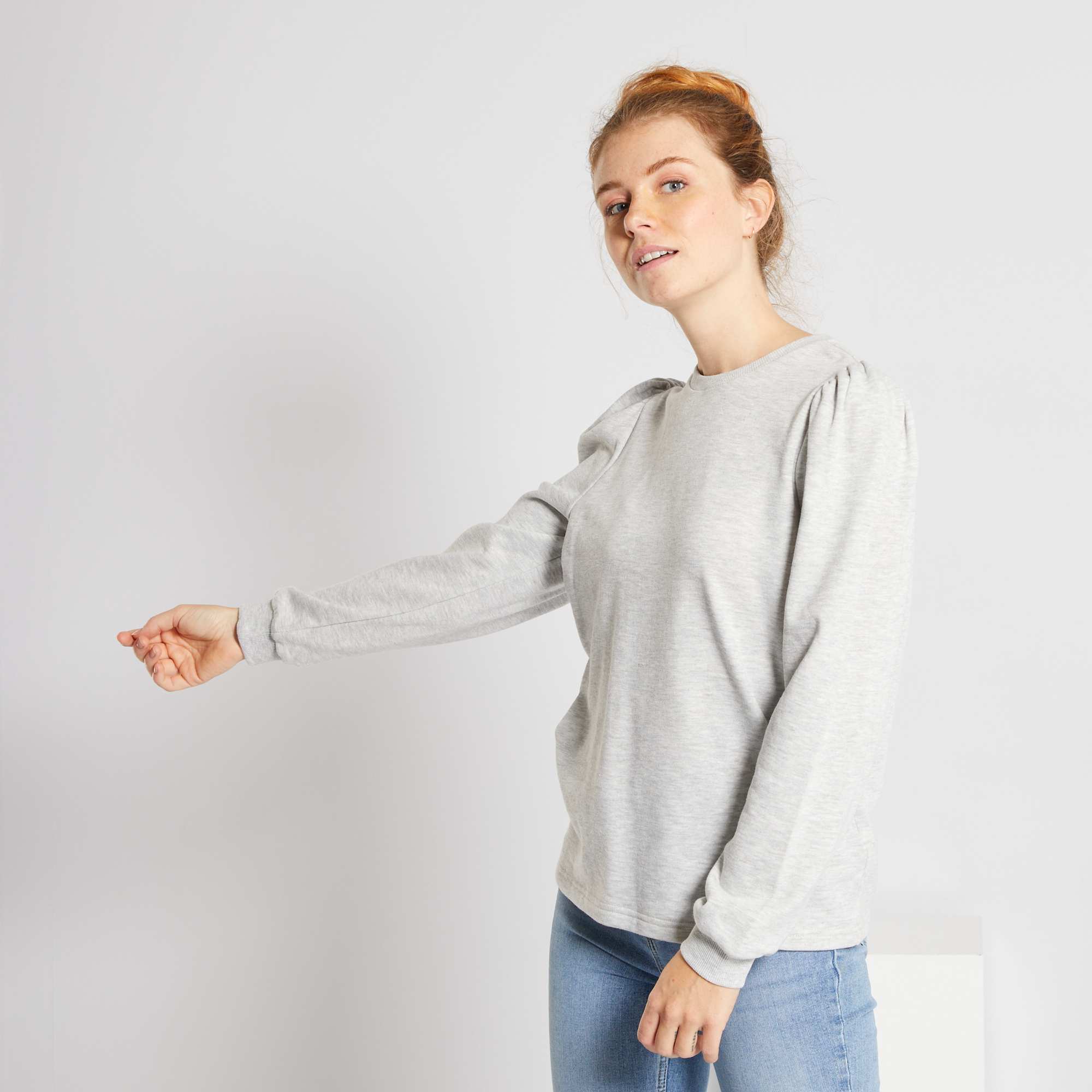 Felpa leggera maniche a sbuffo                                                                 GRIGIO