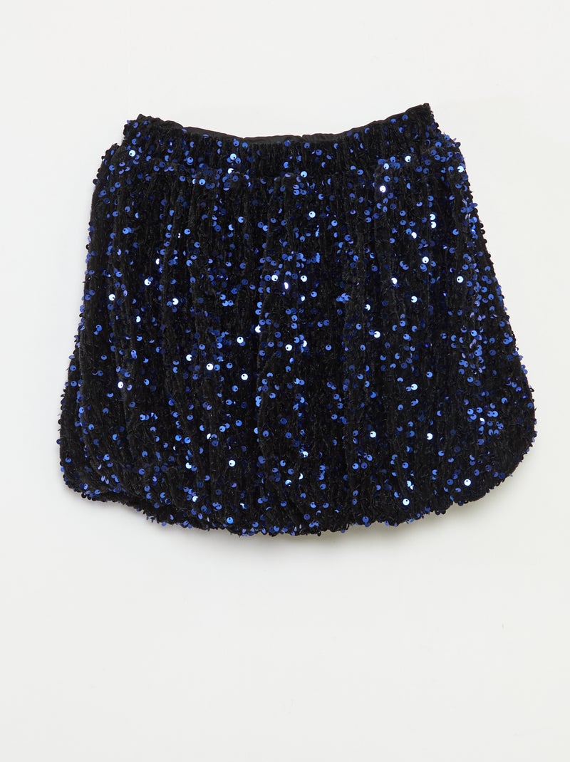 Gonna corta a paillettes tinta unita - Blu