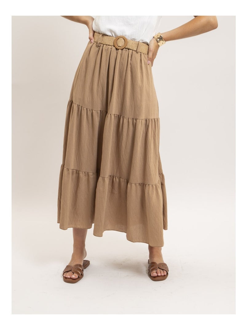 Gonna lunga con volant e cintura XEPOLA - Beige