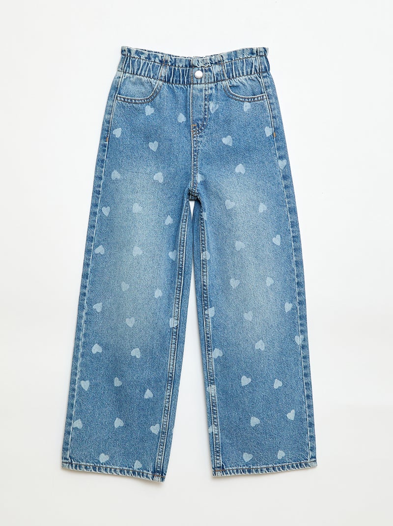 Jeans wide leg con stampa fantasia - Blu