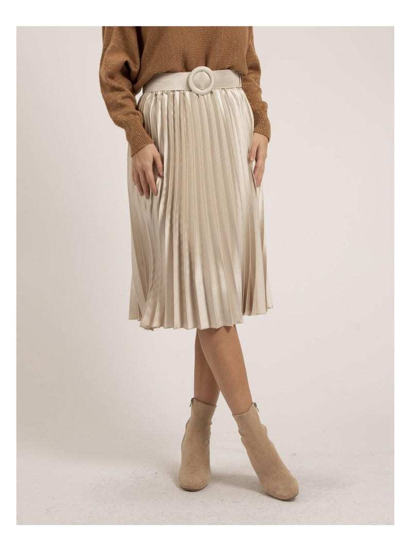 Jupe mi-longue plissée satin et ceinture XOLIA - Beige