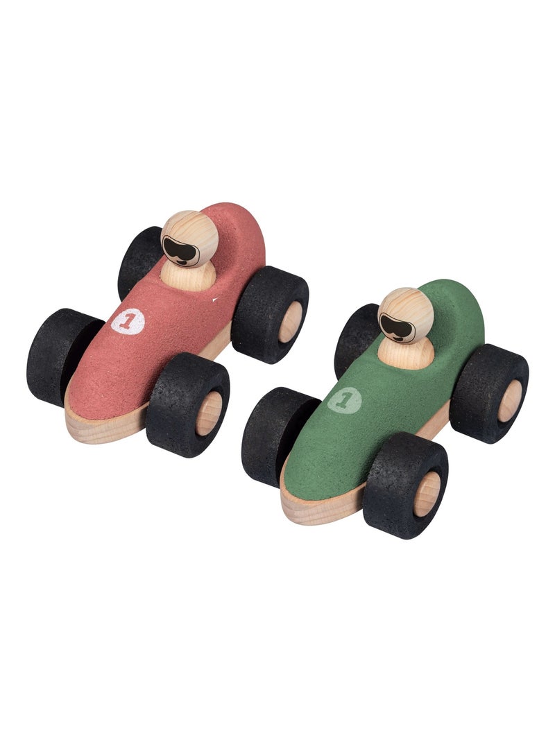 KORKO - Confezione da 2 macchinine da corsa in sughero per neonati - Rosso e verde - Dai 18 mesi - Verde/Rosso
