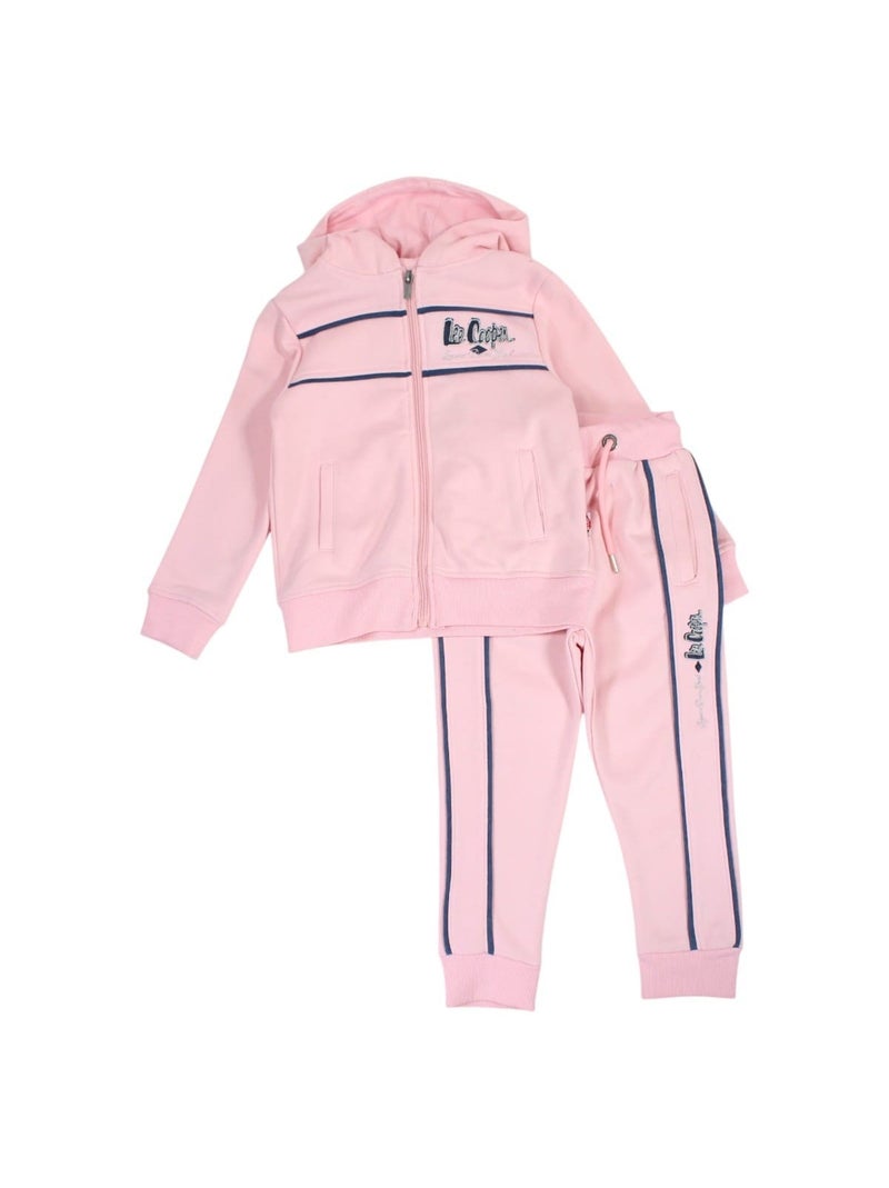 Lee Cooper - Completo giacca con cappuccio e pantalone jogging bambina - Rosa