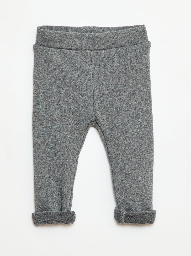 Leggings in maglia garzata di cotone tinta unita - Grigio