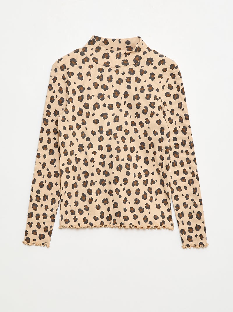 Maglia intima a collo alto in costina di cotone - Beige