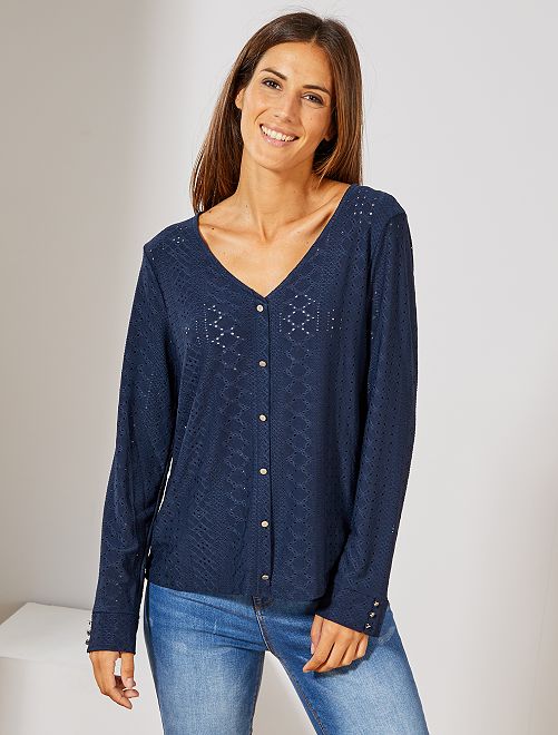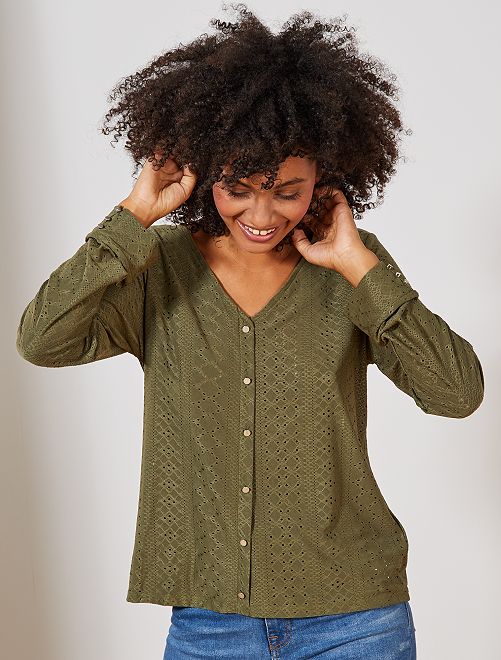 Una maglia effetto camicetta realizzata in una maglia originalissima per passare belle giornate!