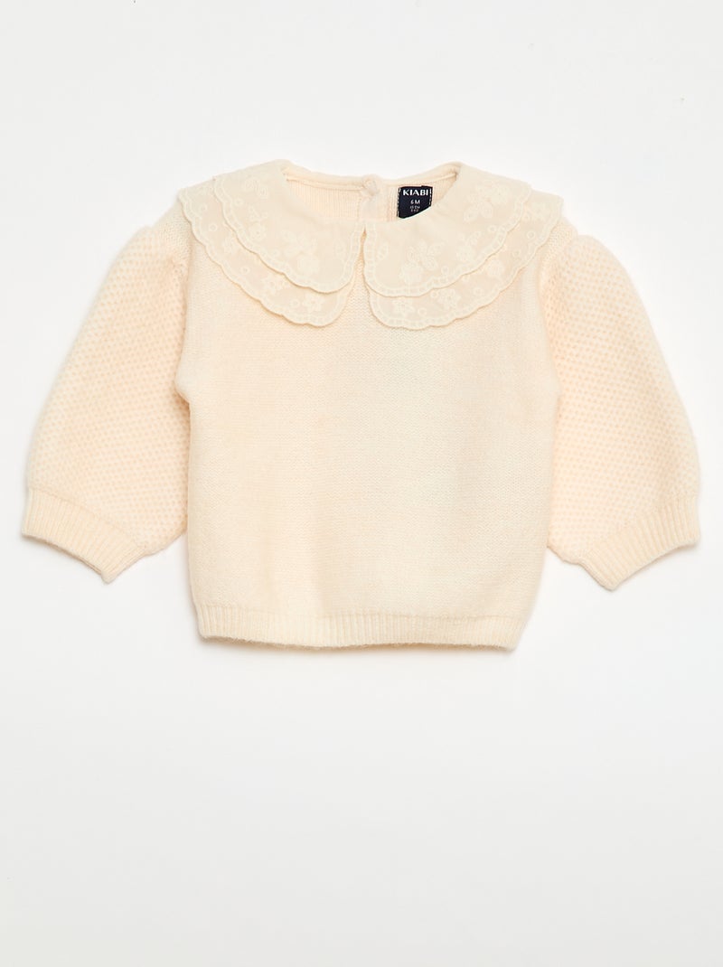 Maglione in maglia con colletto Claudine ricamato - Bianco