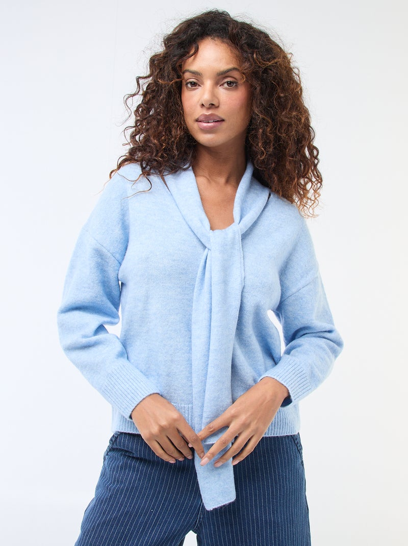 Maglione in maglia con sciarpa a punto grosso - Blu