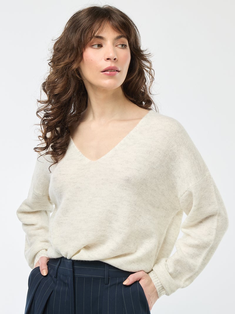 Maglione in maglia fine con scollo a V 'JDY' - Beige