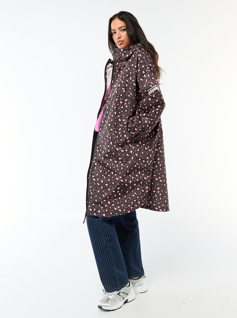 Mantella antipioggia idrorepellente con cappuccio e sistema di ripiegamento su sé stessa - Marrone