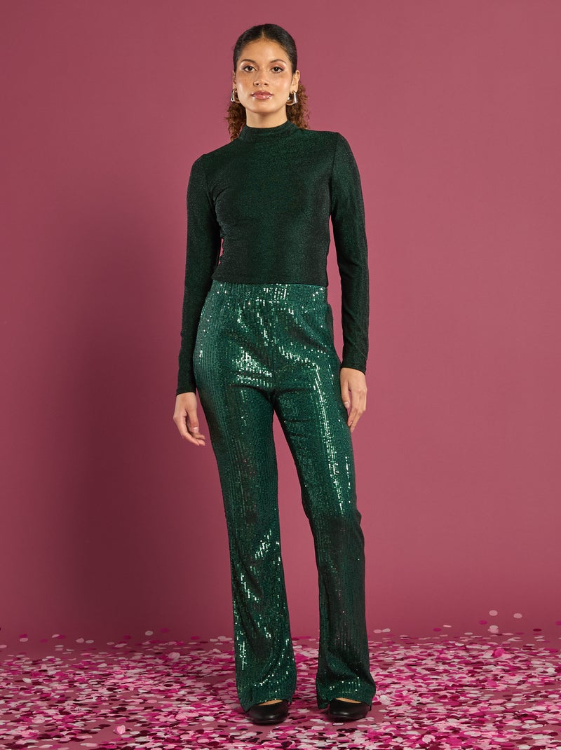 Pantaloni ampi con paillettes - Verde