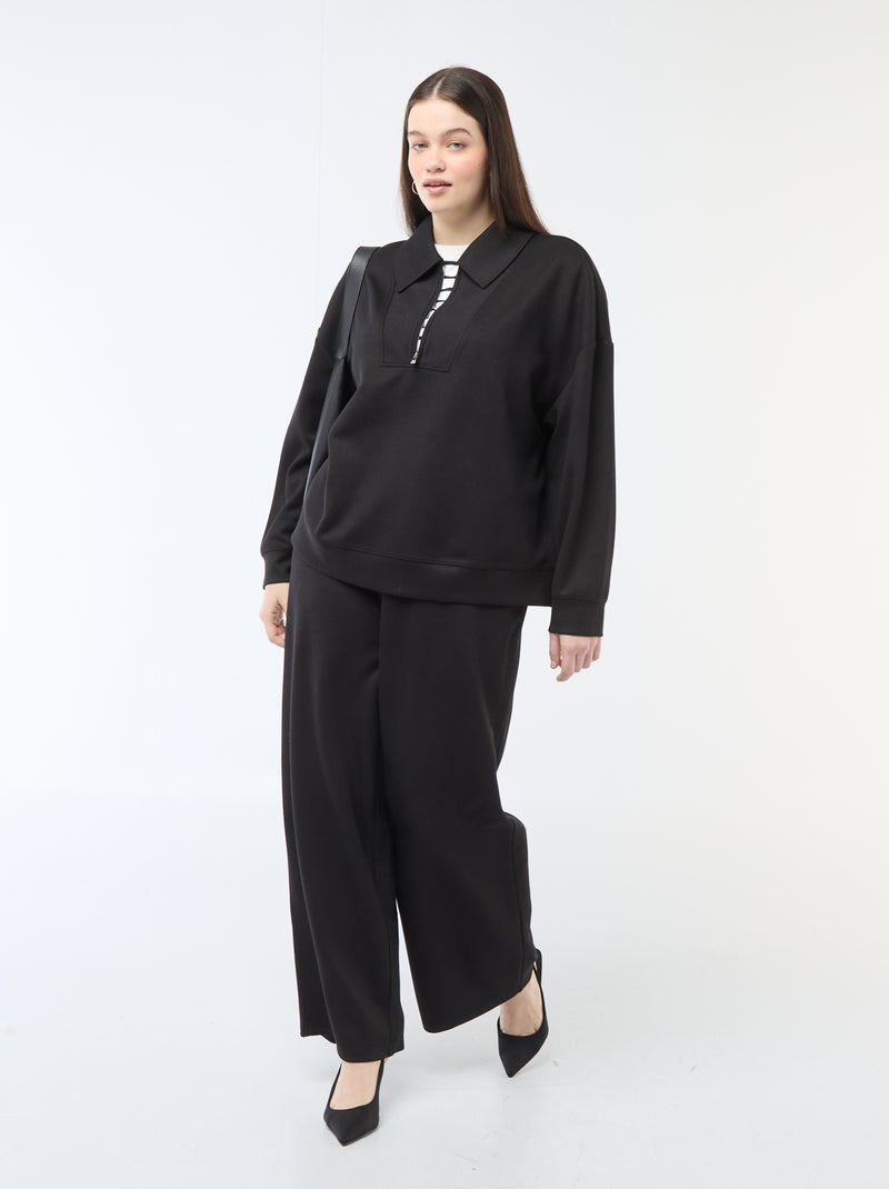 Pantaloni ampi in tessuto stretch a coste - Nero