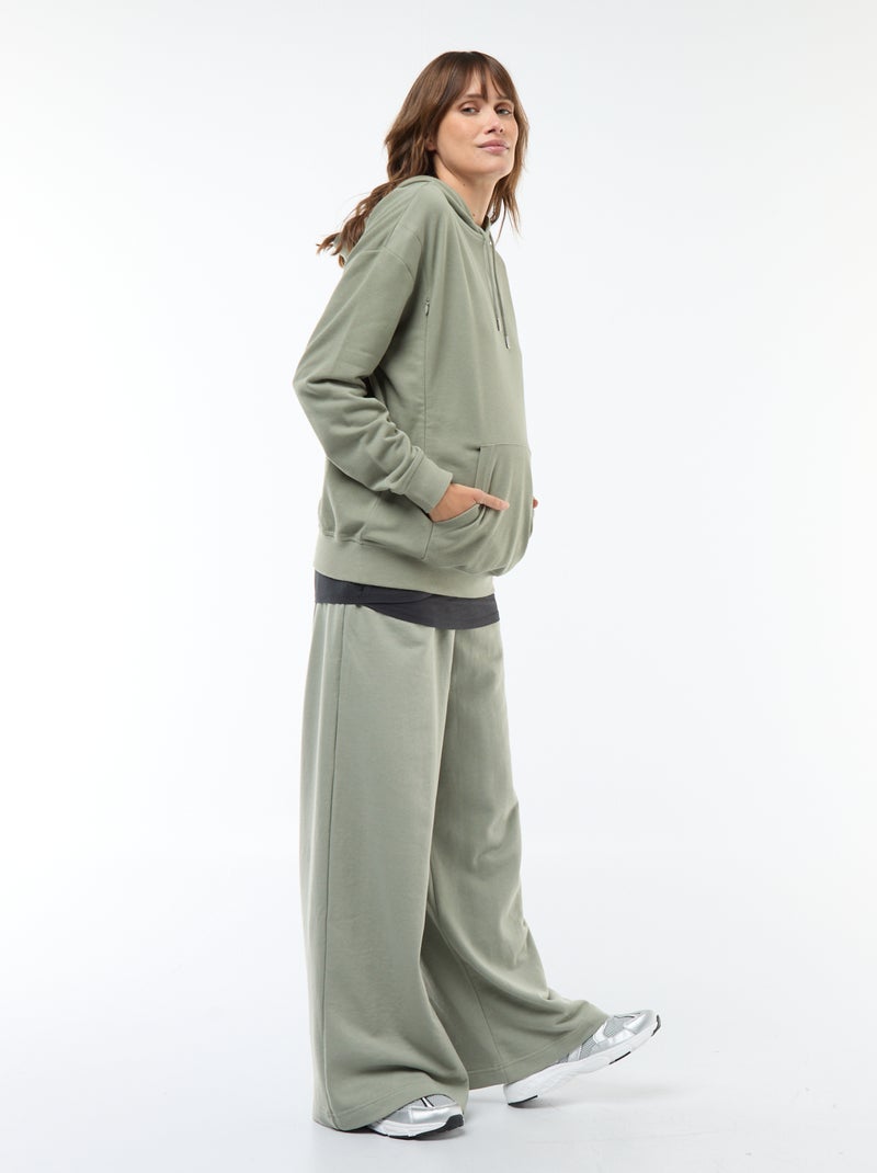 - Ampia cintura in maglia per un maggiore comfort e sostegno alla pancia