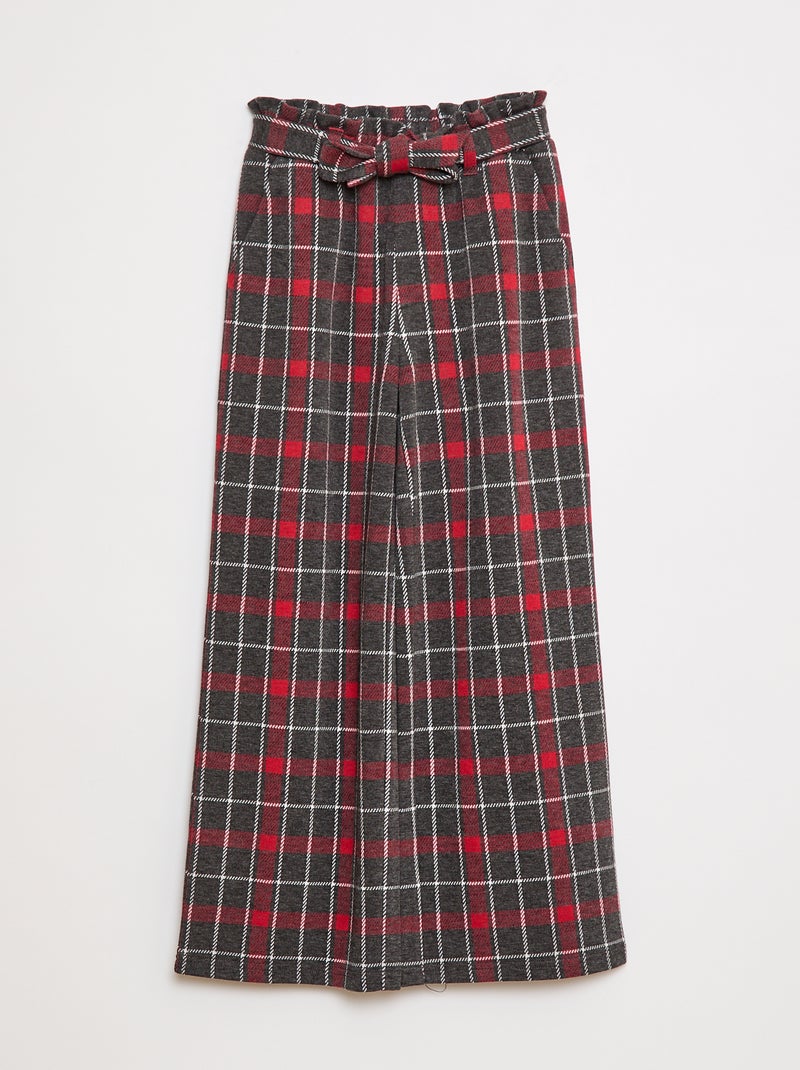 Pantaloni larghi in maglia punto milano con cintura da annodare - - Rosso