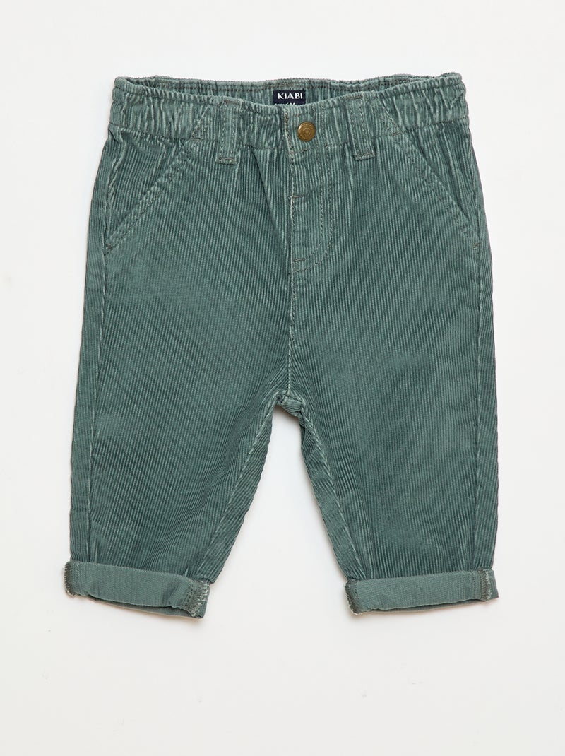 Pantaloni paperbag in velluto a coste - Verde