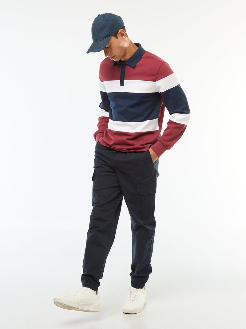 Pantaloni tinta unita multitasche con vita elasticizzata - blu