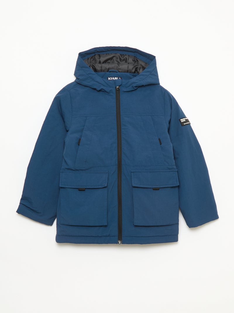 Parka leggera con cappuccio e 2 tasche a soffietto con patta - Blu