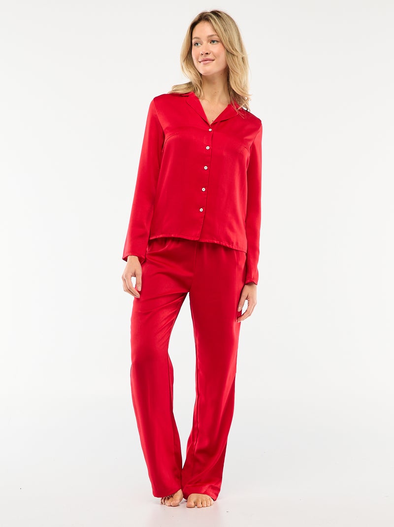 Pigiama 2 pezzi effetto satinato - camicia + pantaloni - Rosso