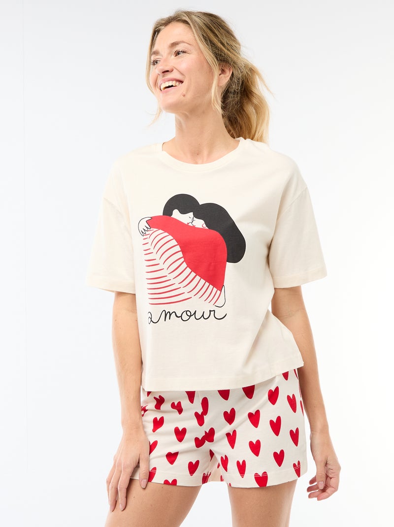 Pigiama corto 2 pezzi 'Agathe Sorlet x Kiabi' - San Valentino - Bianco