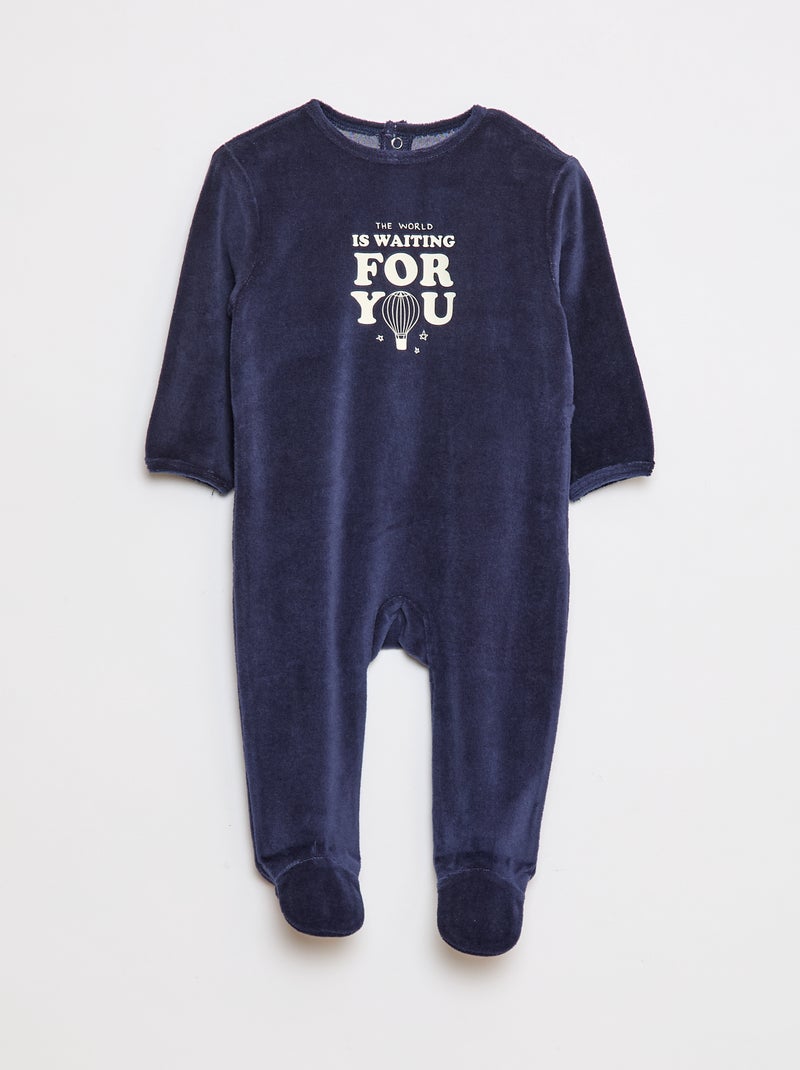 Pigiama in velluto con piedini e animazione sul davanti - Blu