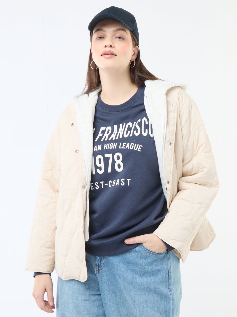 Piumino con cappuccio e pettorina interna in felpa removibile - Beige
