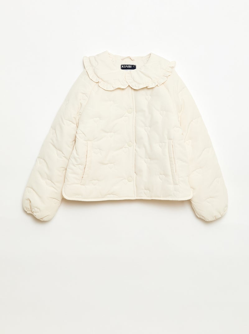 Il piumino rivisitato con i suoi cuori ricamati e il suo colletto Claudine.