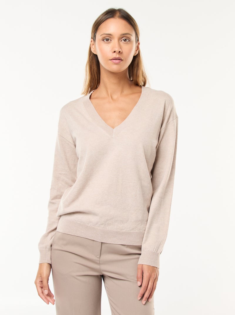 Pullover in maglia leggera scollo a V - Beige